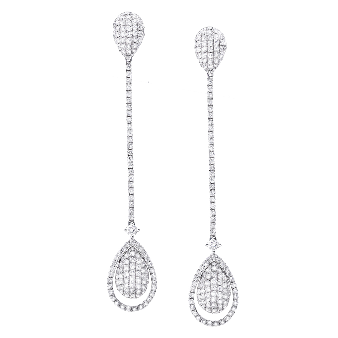 These magnificent drop earrings with exquisite diamond detail are presented in white gold. They showcase a beautiful design that imitates a timeless look for any elegant event.