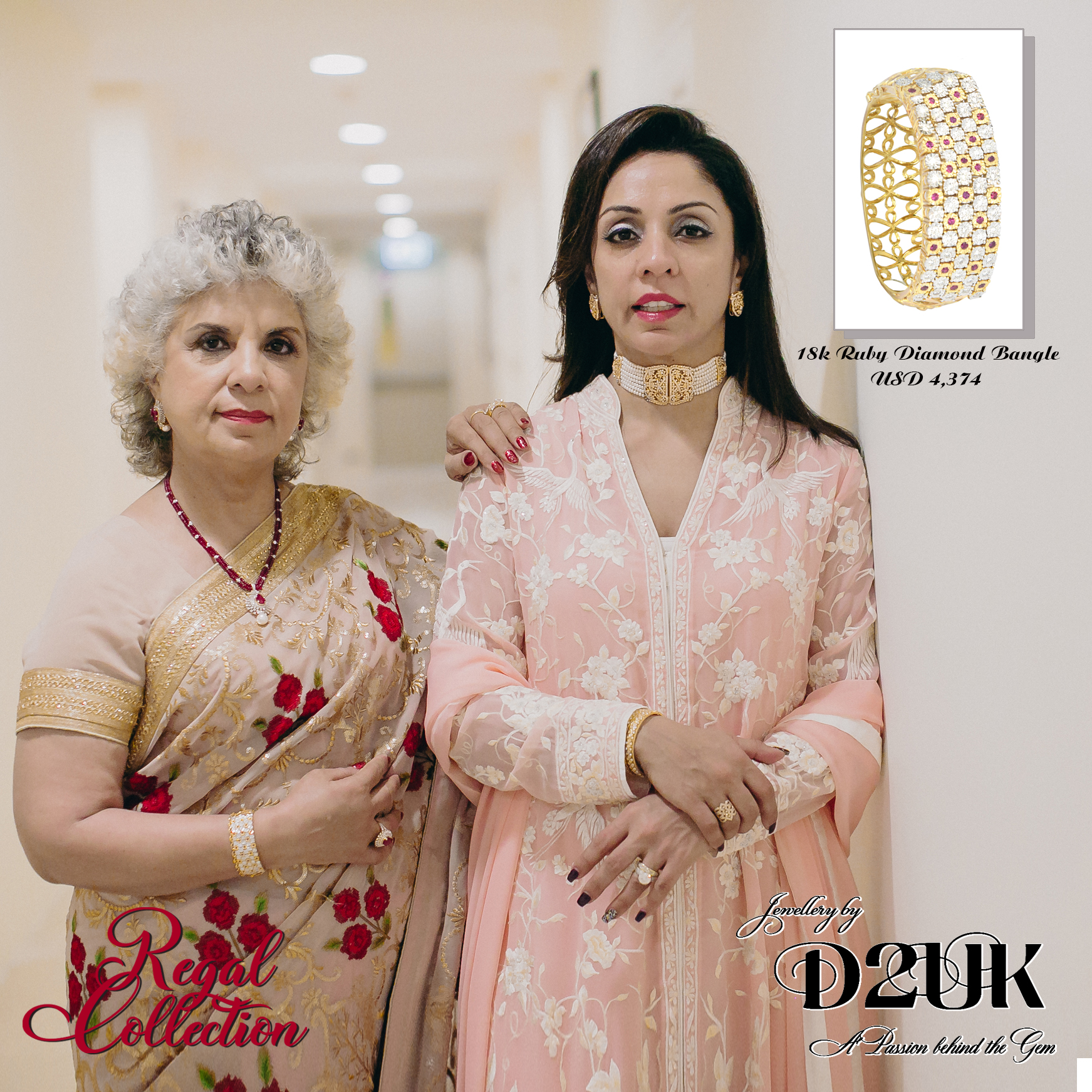 This luxurious cuff in 18k gold is designed to enhance the beauty of the Ruby and diamond stones. This eye-catching bracelet looks fabulous worn with the matching earrings.