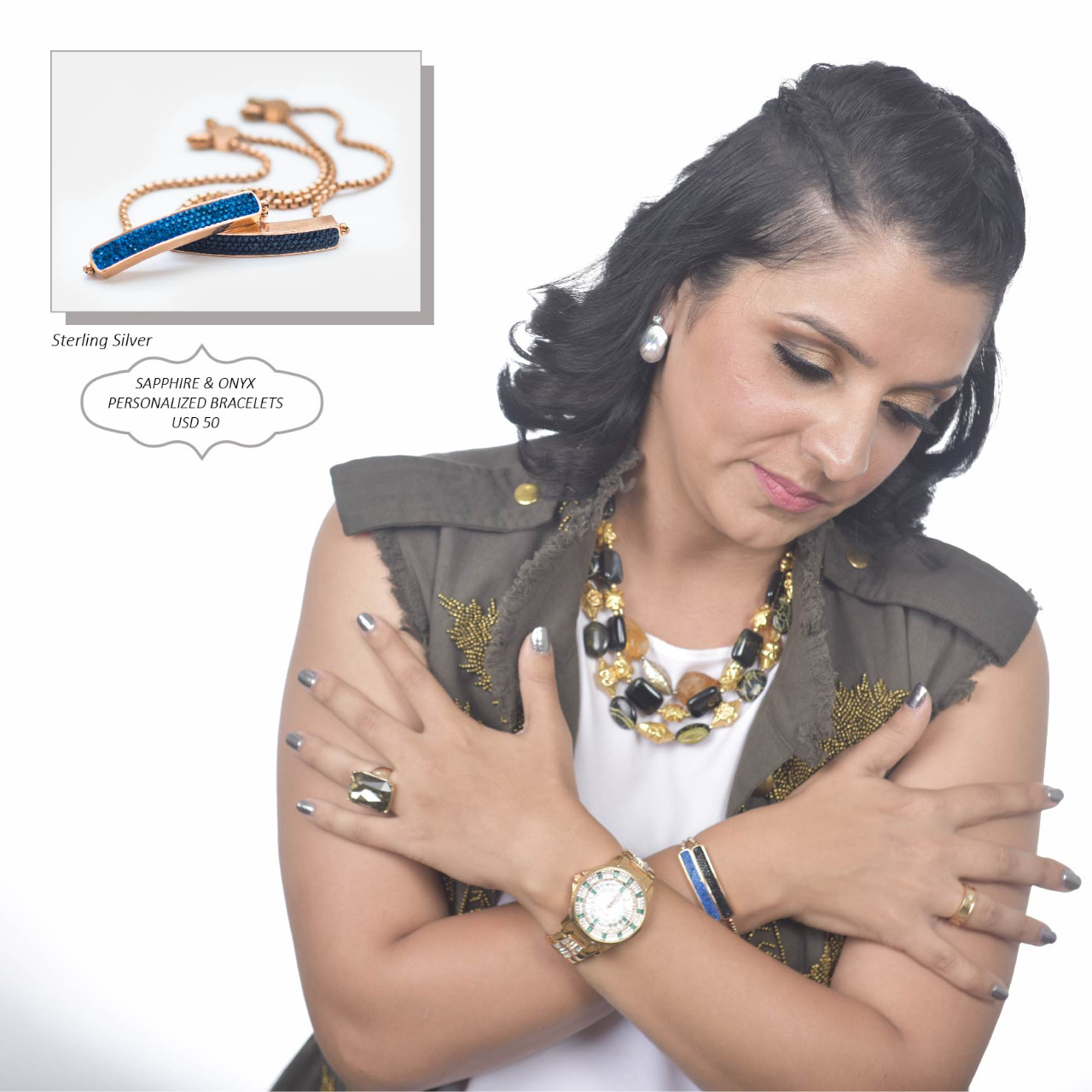 Color stone: Sapphire (106 pcs.) & Onyx (106 pcs.)