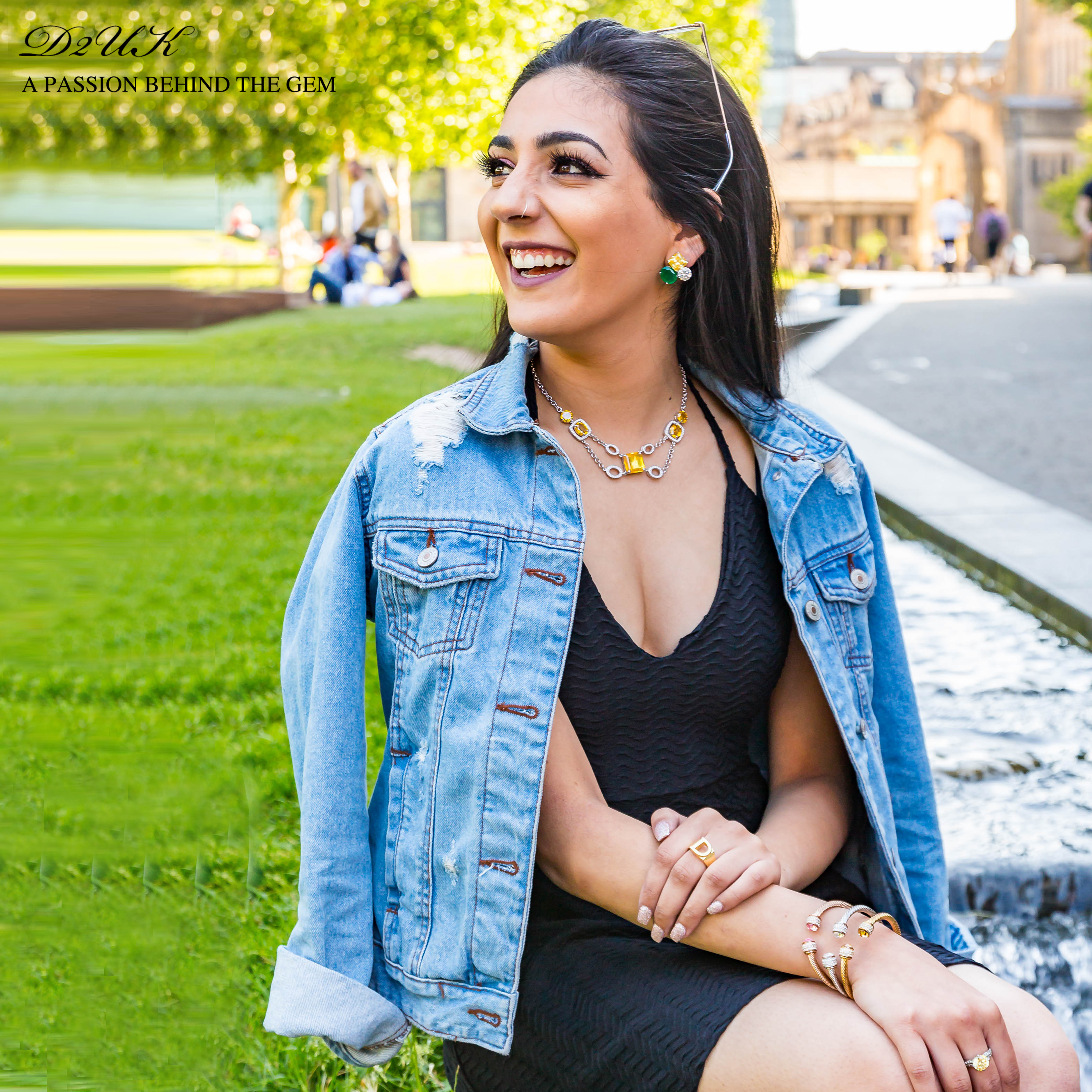 A unique gold design that beautifully completes any outfit. The Citrin’s and diamonds are perfect for a statement piece or simply outstanding with the matching pieces. This setting also comes in Emerald and Ruby, in a gold and silver finish.