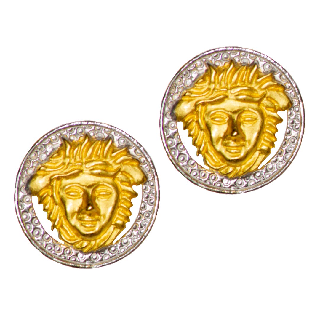 A spectacular pair of vintage Versace inspired earrings each set with beautiful cushion cut white diamonds. Modelled in yellow and white 18kt gold with lever backs.